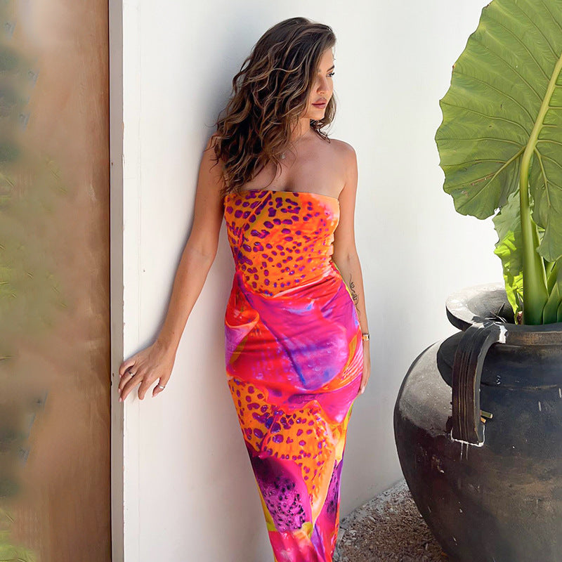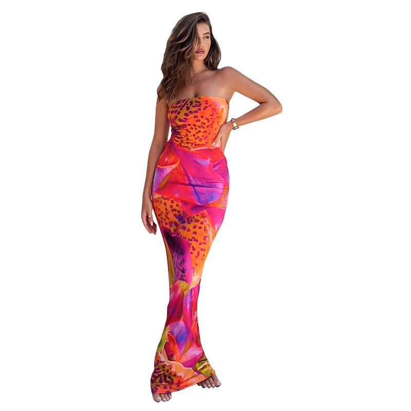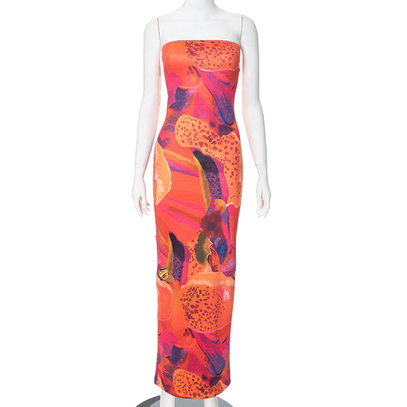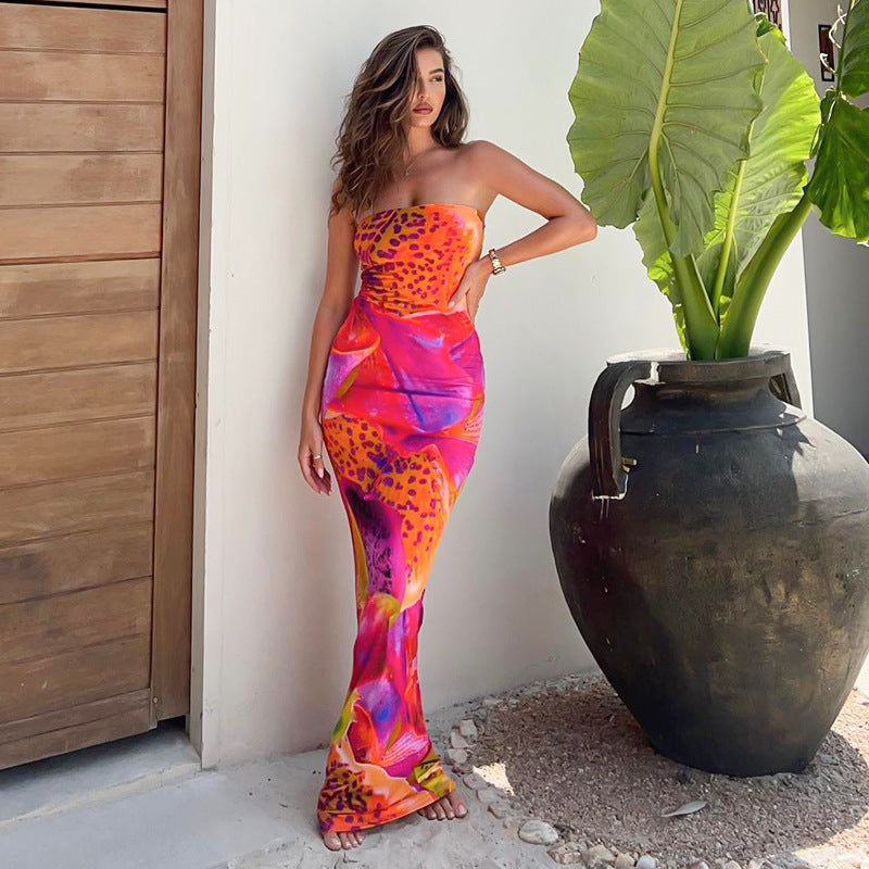Elegant Printed Sleeveless Tight High Waist Long Dress