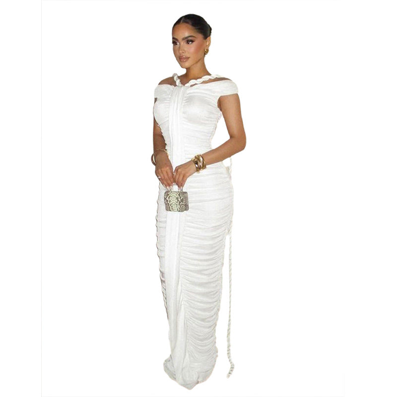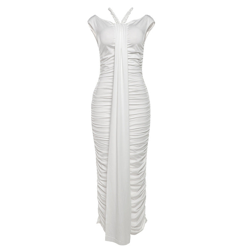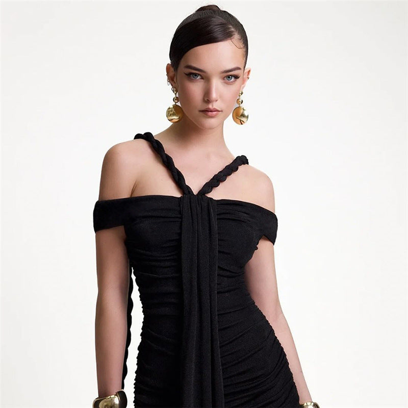 European And American Elegant Boat-neck Pleated High Waist Figure Flattering Sheath Dress