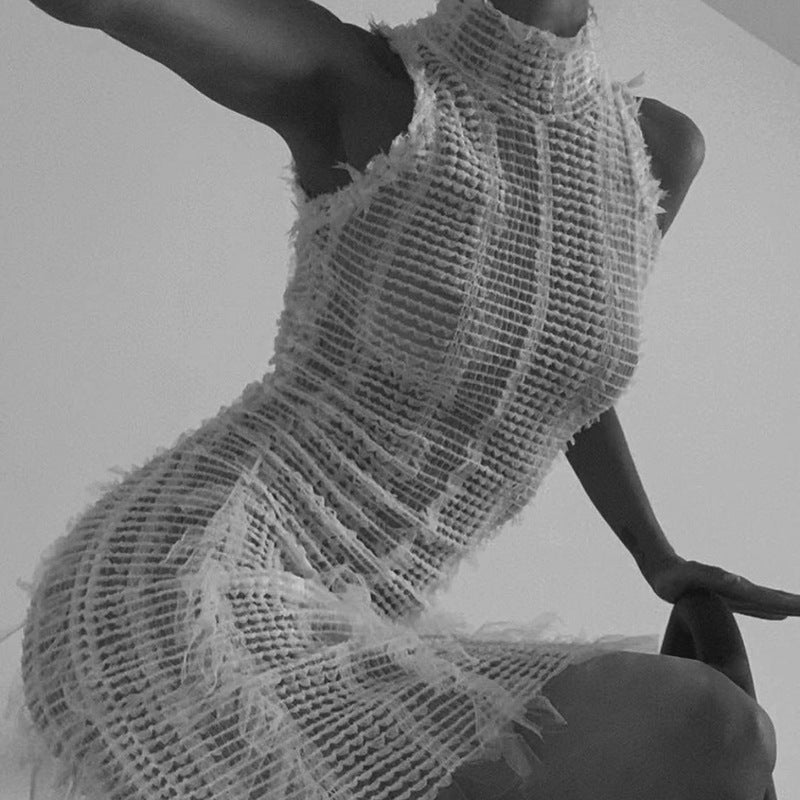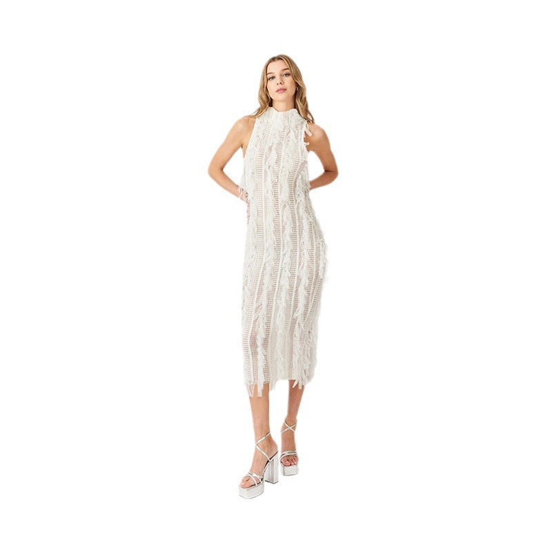 European And American Fashion Sexy Tassel See-through Slim-fit Elegant Sheer Mesh Dress