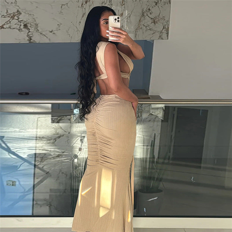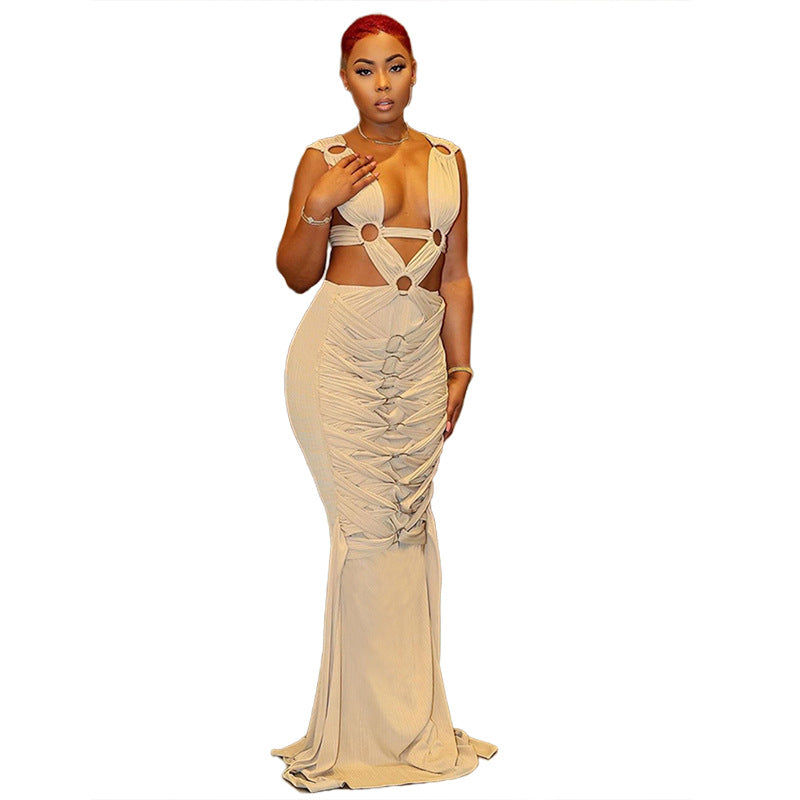 Sexy Hot Girl Hollow-out Ripped Lace-up High Waist Figure Flattering Sheath Dress