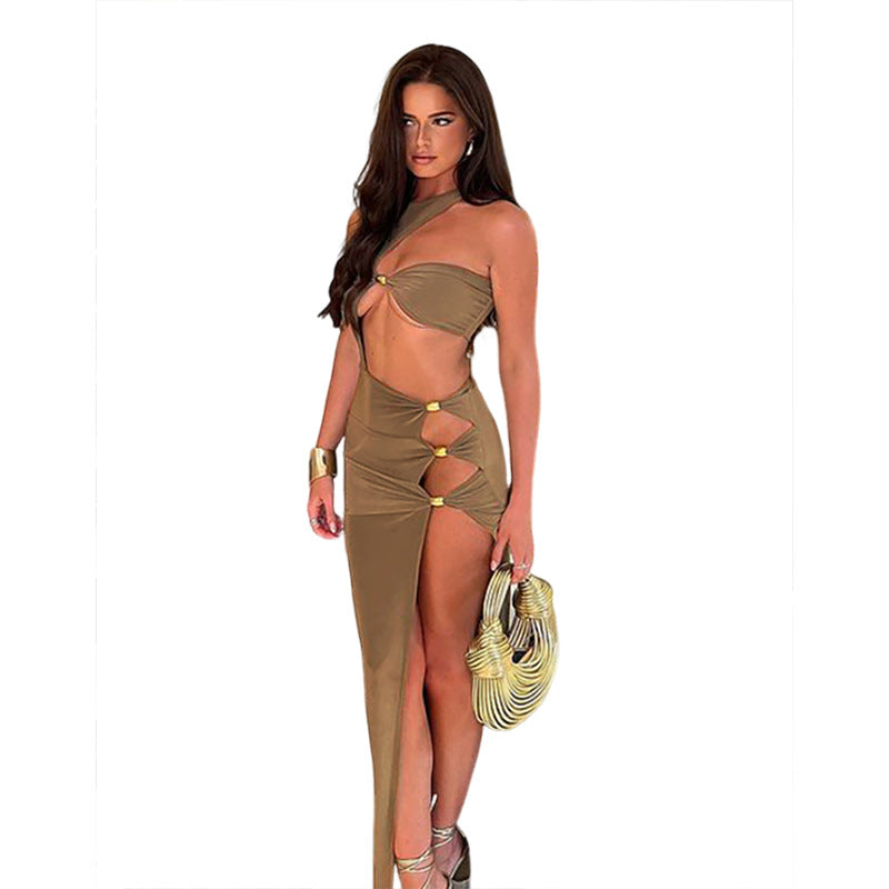 Sexy Hot Girl Sleeveless Pullover Hollow Out Split High Waist Slim Fit Dress