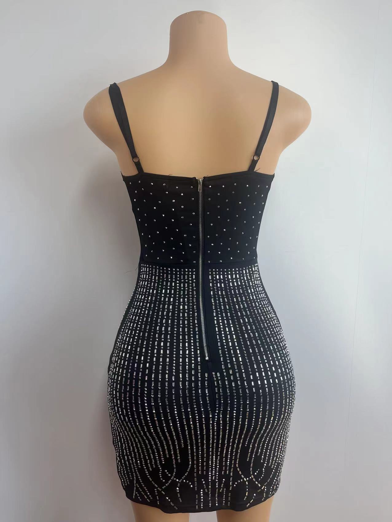 Fashion Women's Wear Mesh Rhinestone Hip Skirt Solid Color Sleeveless Sling Dress