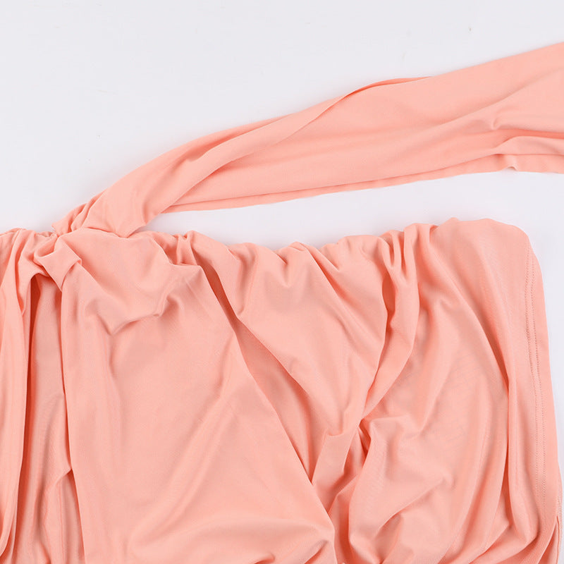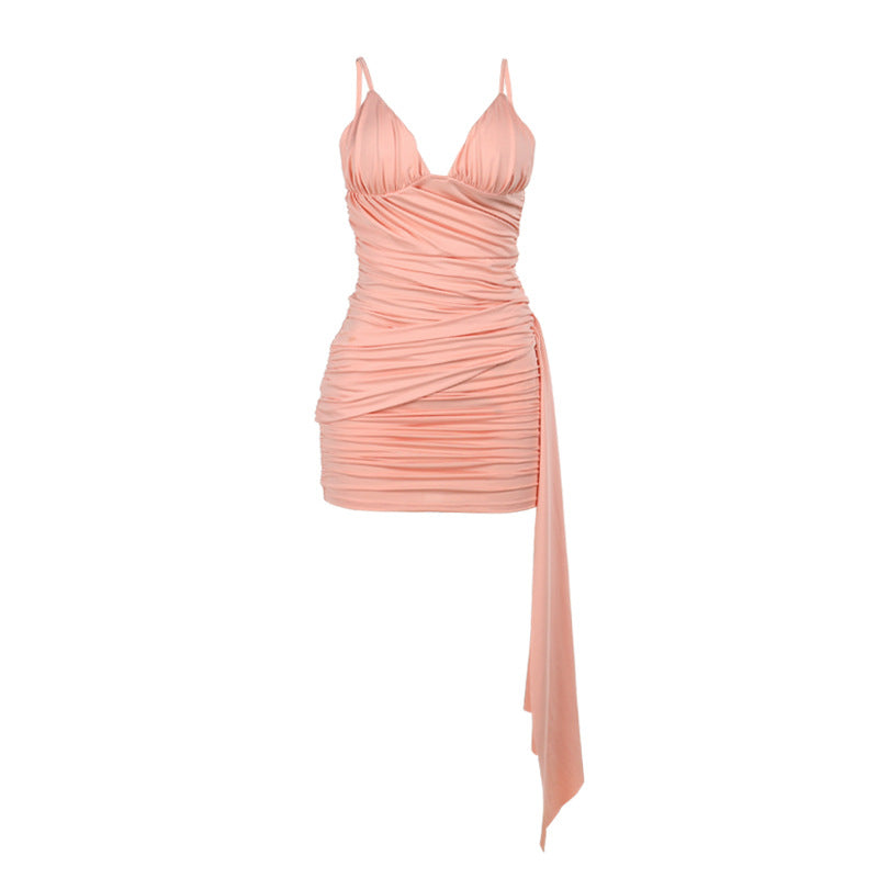 Fashionable Deep V Ribbon Pleated Suspender Skirt For Women