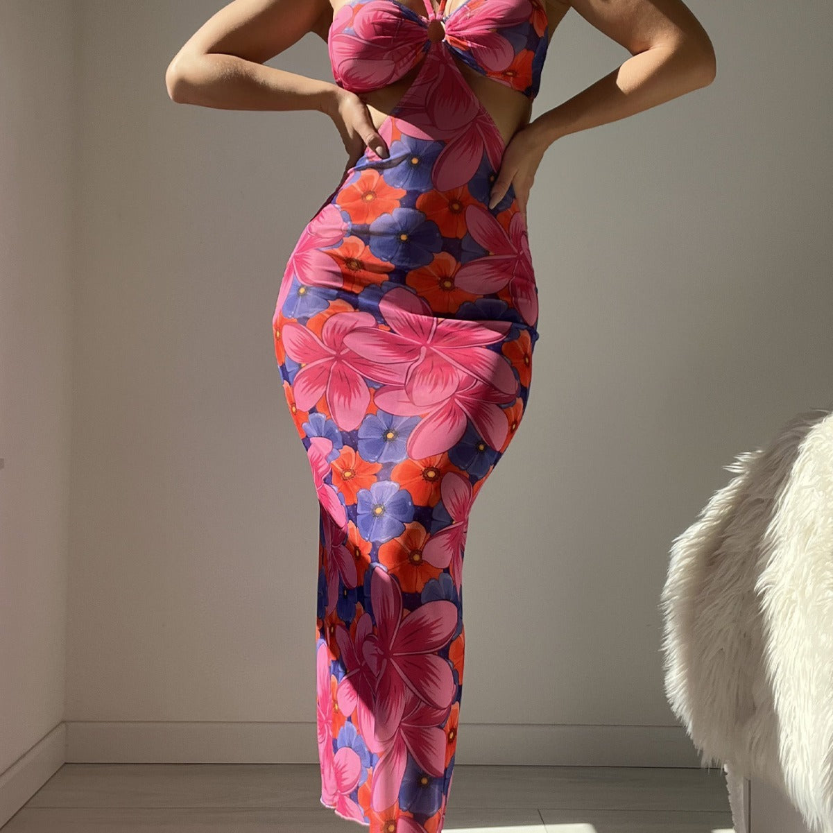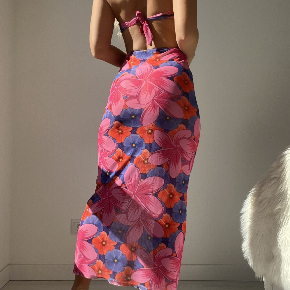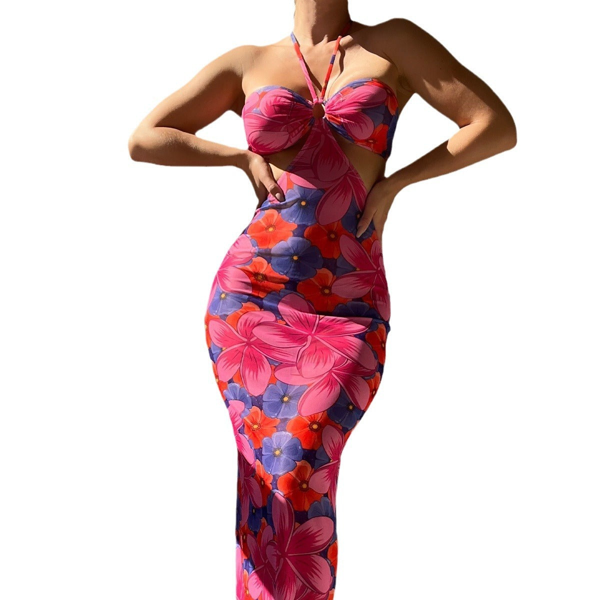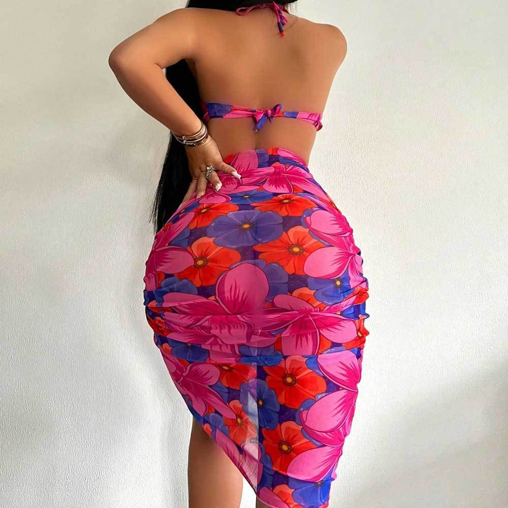 Halter Backless Printed Lace-up Dress