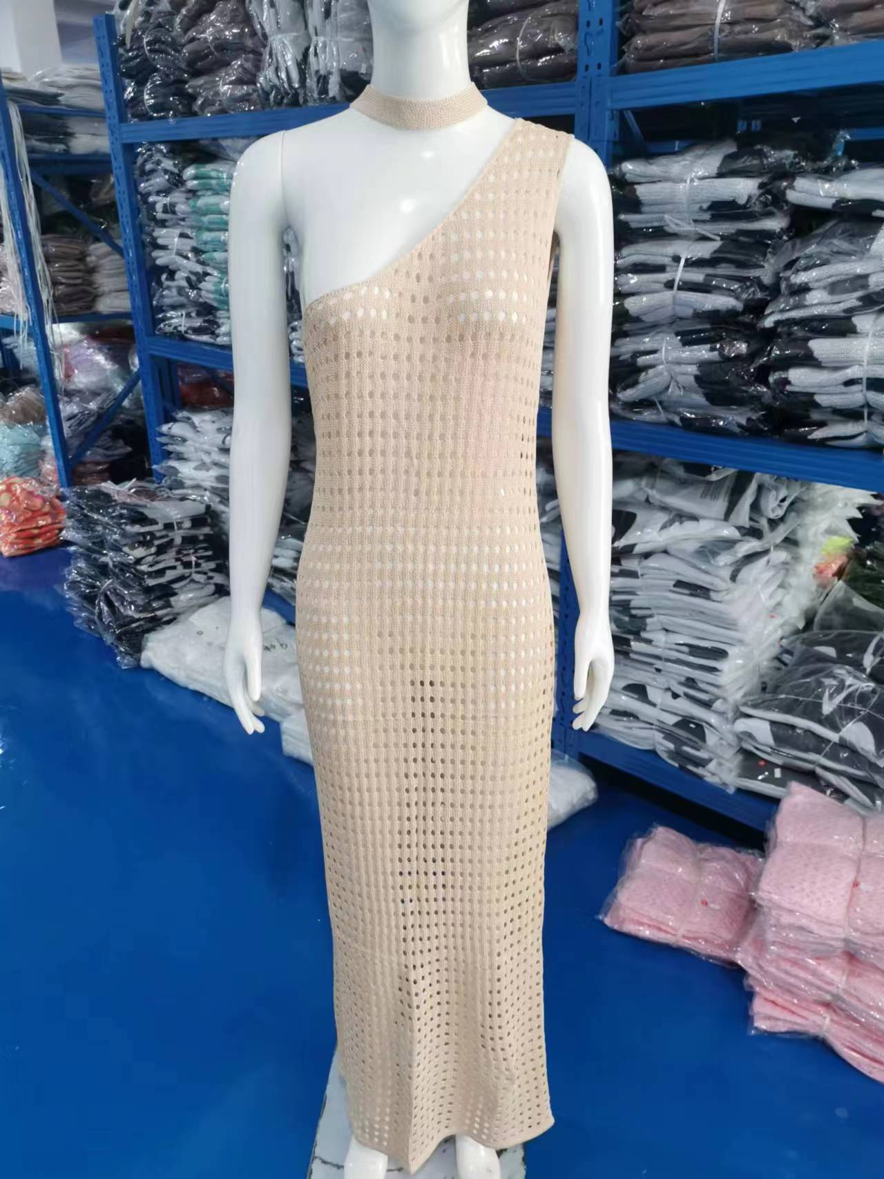 Hollow Out See-through One-shoulder Scarf Lace-up Dress