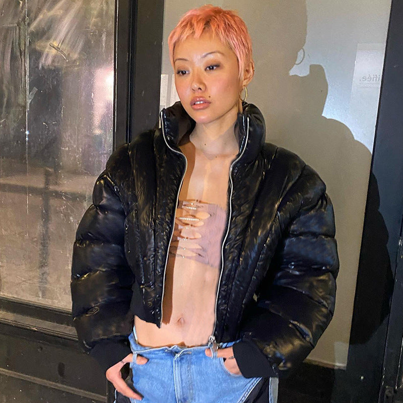 New Solid Color Casual Polo Collar Long-sleeve Zipper Slim Fit Midriff-baring Jacket