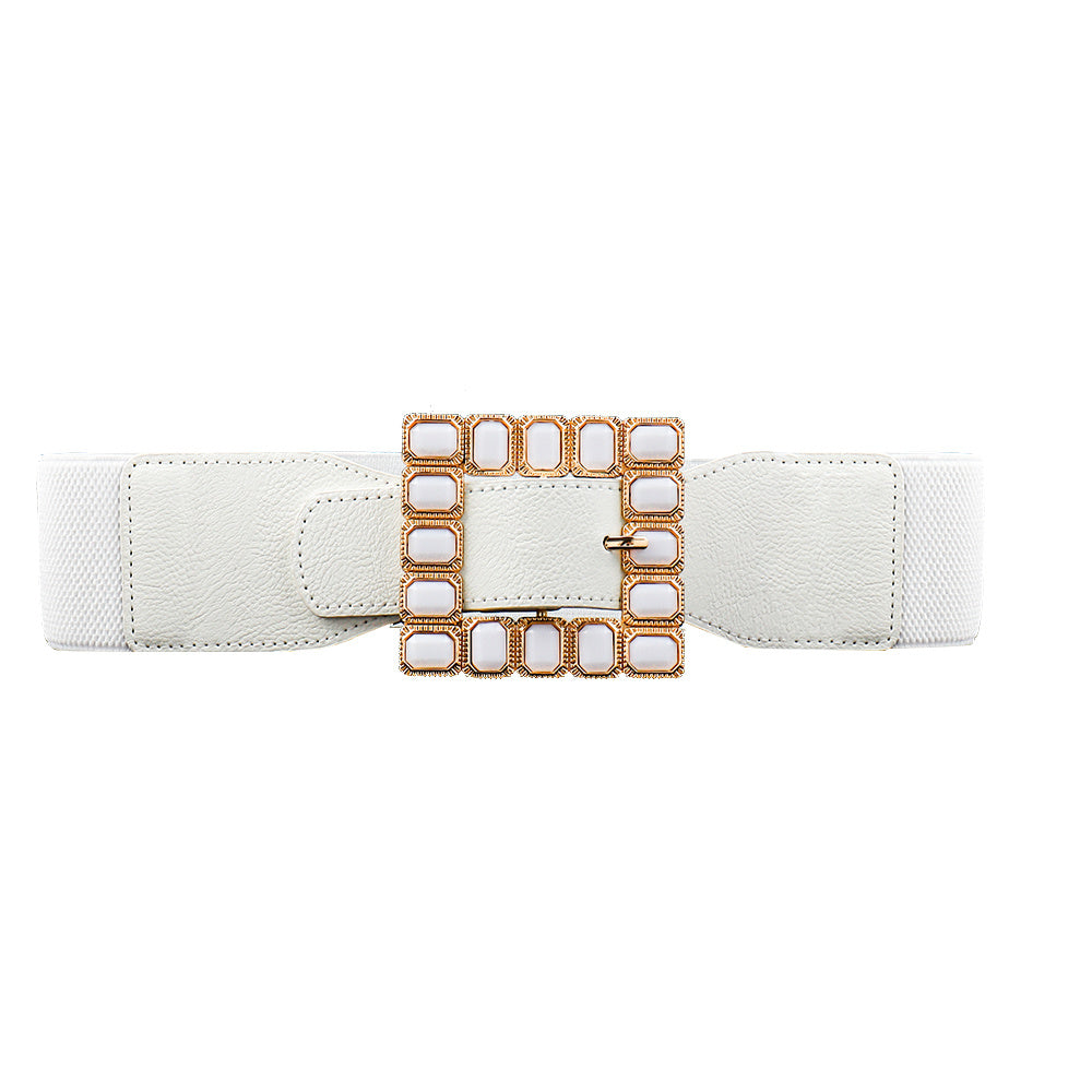 New Women's Wide Belt Black And White Square Drill High Elastic Elastic Senior Needle Buckle Waist Seal With Autumn And Winter Coat Belt