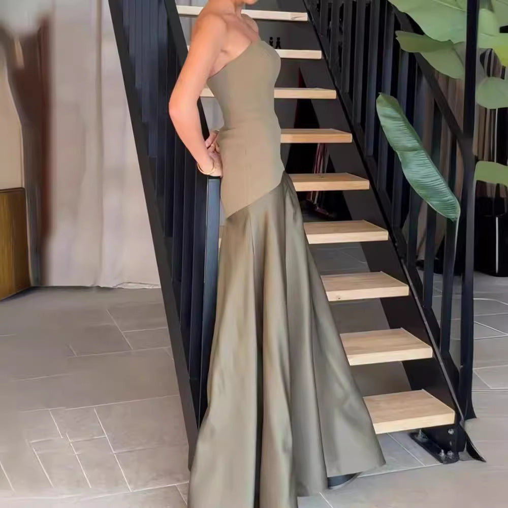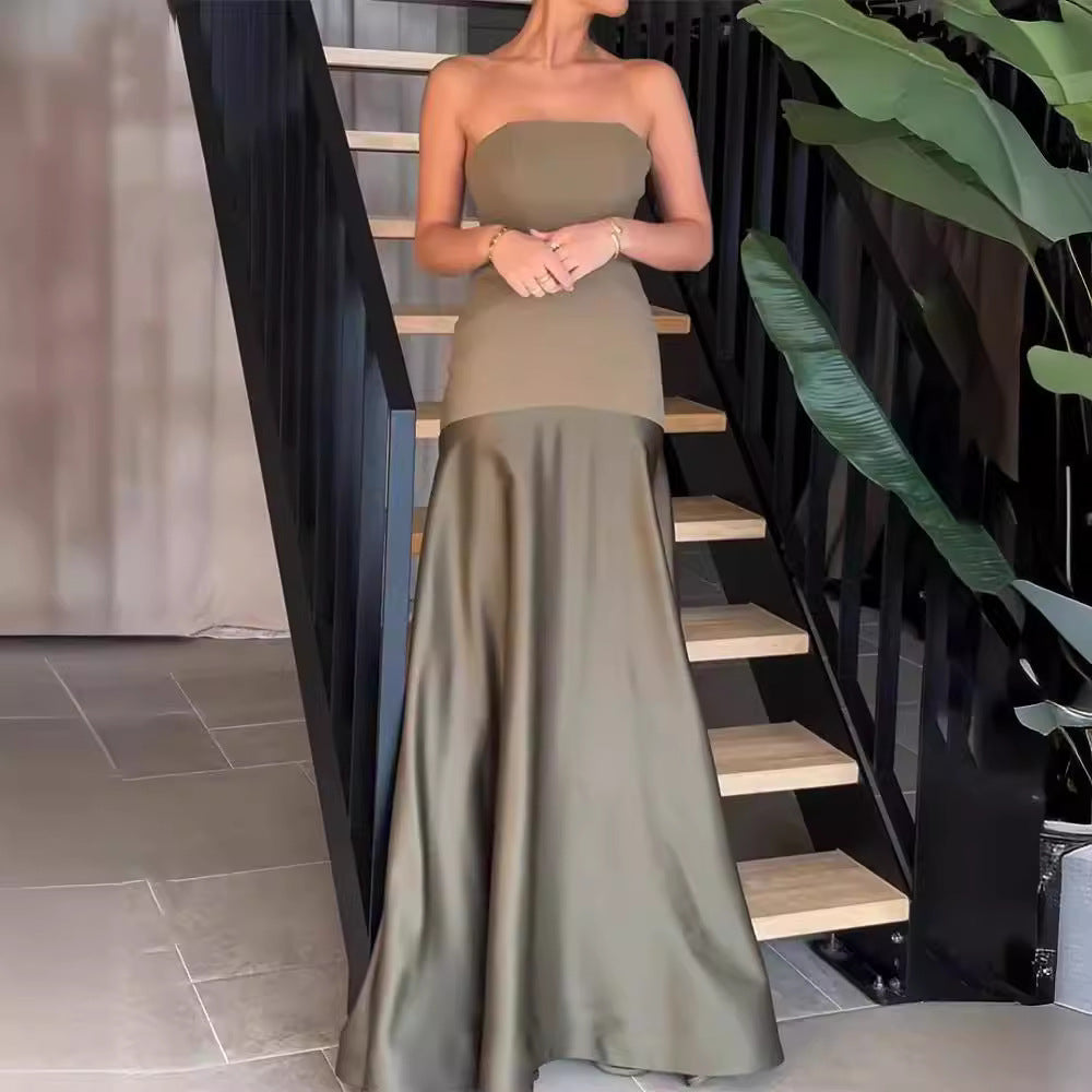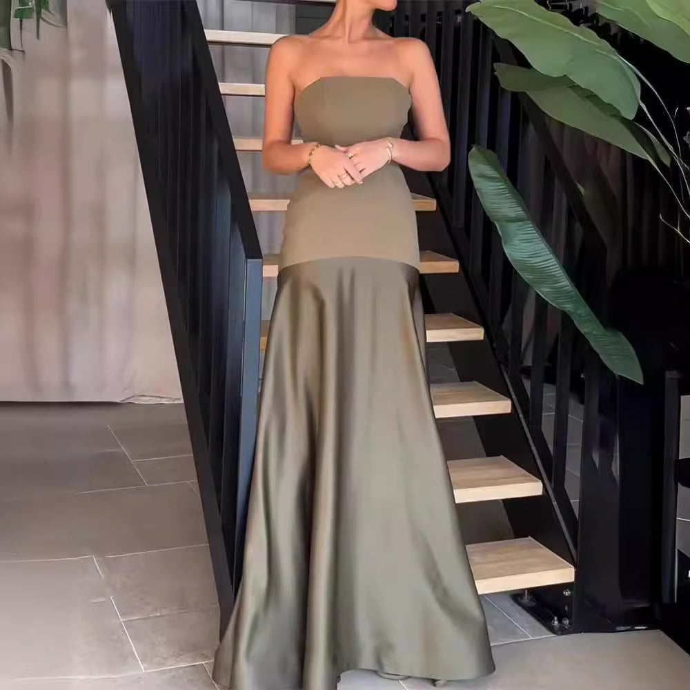 Tube Top Sleeveless Sling Slim Solid Color Dress