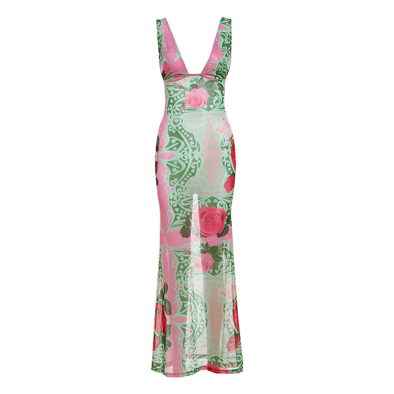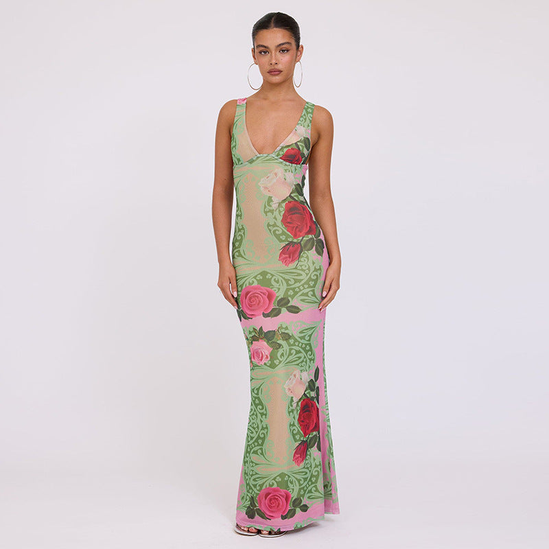Women's Fashion Printed V-neck Slim Fit Dress