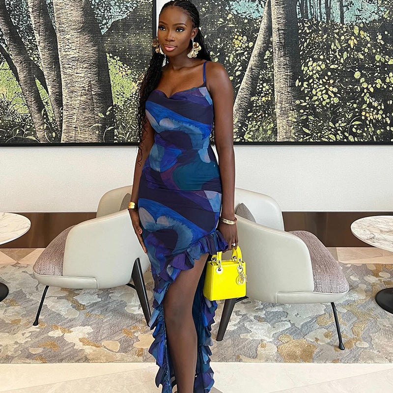 Women's Fashion Printing Dress Spaghetti Straps Sleeveless