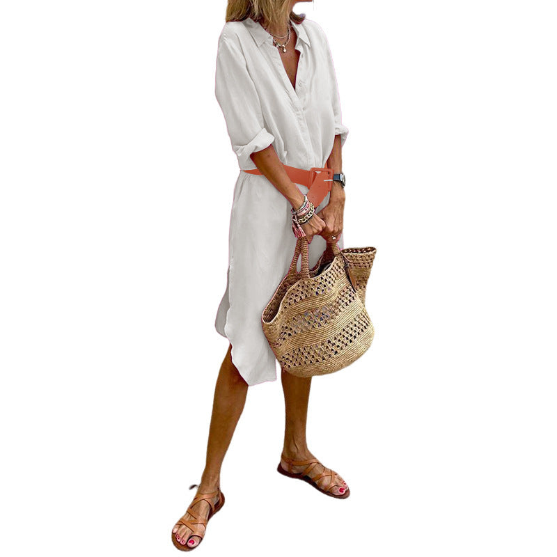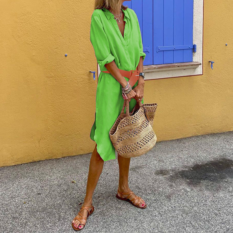 Women's Solid Color Polo Collar Mid-length Shirt Dress